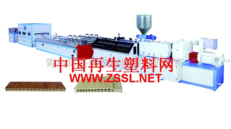 PVC窗台板的生产线,窗台板挤出生产线,木塑窗台板设备特点:是我公司吸收国外先进技术专业研制、设计、生产PVC窗台板的生产线,其生产工艺为:混料-双螺杆挤出-模具-真空定型-冷却-校正-牵引-切割-卸料-覆膜。 此窗台板生产线生产稳定性强,产量高,寿命长,产品表面光洁度平整光滑,产品尺寸精度高。 主要电器件采用进口配件,该设备生产的制品宽度为:500-1000mm,厚度:20-40mm,覆膜后美观大方,是一种非常理想的装修材料。