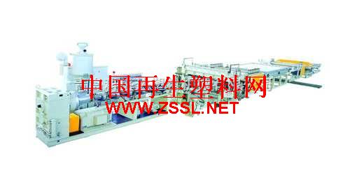 塑料中空格子板生产线 PC、PE、PP中空格子板生产线 生产线简介 该生产线用于PC、PE、PP中空格子板的连续生产,产品广泛用于建筑装饰、广告布置、公路噪音、隔音以及包装。 PE、PP中空格子板可以代替纸箱做包装箱,质量轻、强度高、防潮、防腐。板材成品宽度700mm-2100mm,厚度:2-12mm 挤出机:螺杆的特殊设计,先进的控温系统,确保塑料的塑化良好及高产量稳定挤出。 换网器:选用液压快速换网装置,使换网过程快速有效;双工位和特殊的密封结构,保证换网器稳定工作。 模具:模具采用优质合金钢制成,带有高活动性的节流装置,使料流在口模分布压力均匀一致;上下口模的差动调节,确保了上下壁厚的均匀。 真空定型台:定型系统中设有快速的热交换制冷系统,并与真空系统有效交错,顺序分布,此种分布确保了定型精度。两个独立真空系统、牵引机:两组大功率、大减速比、大牵引多辊式牵引机、先进的大面积传导加热方式应力消除器 切断机:配有精确的瞬间定长切断及自动升降卸料装置。